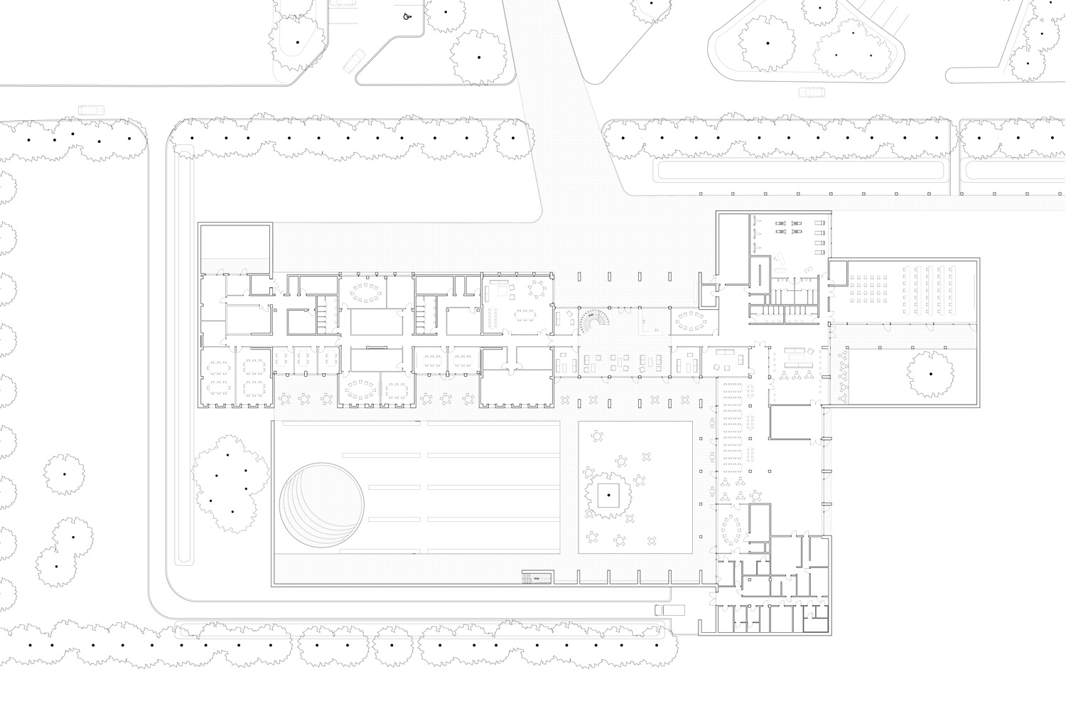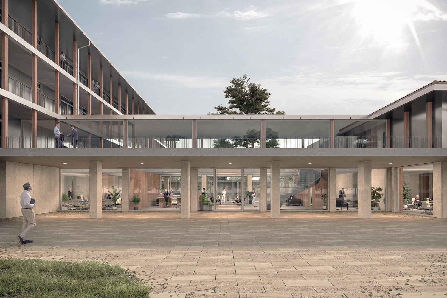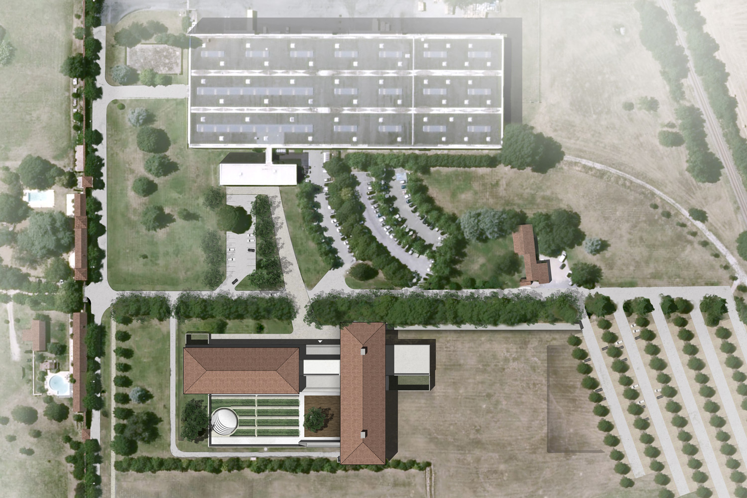 Construire un nouveau projet, à cet endroit précis, c’est inévitablement instaurer un dialogue avec cette belle enceinte en appareillage de pierre ocre et grise. On pourrait alors se conformer à l’attitude classique qui préside au traitement architectural de ces zones d’entrée de ville en contribuant à leur esthétique du « cadavre exquis » : on compléterait alors la collection d’objet autonome, autocentrée, chaque bâtiment industriel ou tertiaire entretenant le plus souvent un rapport à son contexte limité exclusivement à sa surface foncière. On contribuerait alors à élargir de manière impensée cette tâche urbaine diffuse, construite en 50 ans, de 1970 à 2020. Mais l’occasion d’un concours d’architecture c’est aussi l’opportunité d’avoir une lecture différente de ces situations urbaines et d’avoir une attitude de projet plus contemporaine : cela passe notamment par la volonté de traiter ces zones logistiques, artisanales et industrielles, dite d’urbanisation récente, avec la même attention que les villes constitués et sédimentés depuis plusieurs siècles. En procédant ainsi à une analyse fine et personnelle du site et des préexistences du lieu, cela nous conduit à proposer un projet qui répond à cinq grands principes.